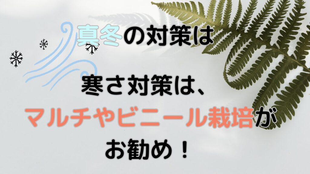 育てる場所によりますが、やはり冬場は冷たい風が吹くことが多いので、ビニールを飛ばさないようにしっかりと補強をしてください。