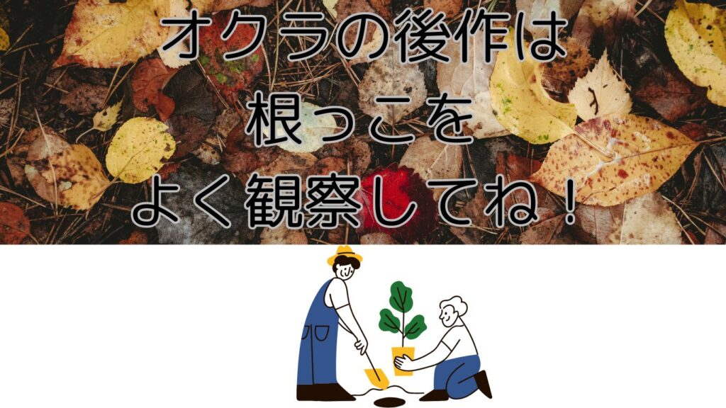 また、オクラはネコブセンチュウ被害が比較的多いので、わからずにその後の根菜、ナス科、ウリ科など、ネコブセンチュウの被害にあいやすいためやめた方がいいとされています。